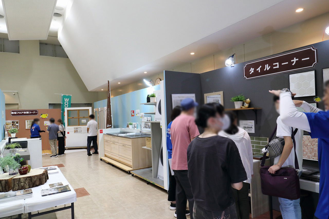 会場ではリフォーム商材の展示や新築コーナー、掘り出し物の販売など、見て・体験して・選んで楽しめる内容が盛りだくさん。おかげさまで、終日とてもにぎやかなイベントとなりました。
