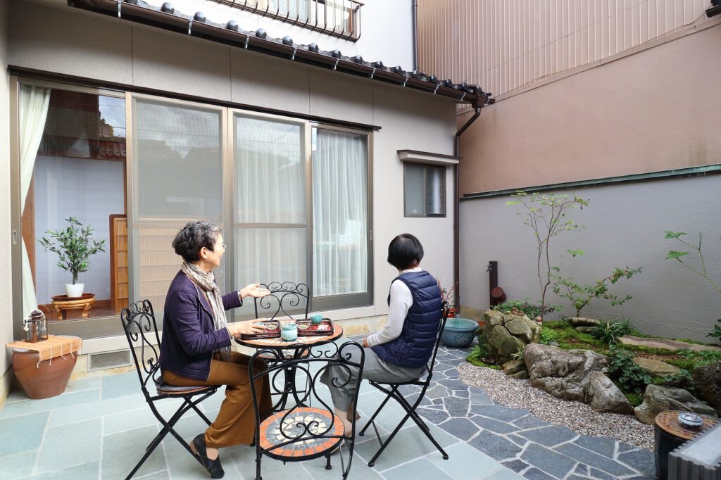 以前は見るだけの庭でしたが今は一服しようかなと思えるようになりました。ご近所さんとも庭でお茶もできるので、気持ちが明るくなります。