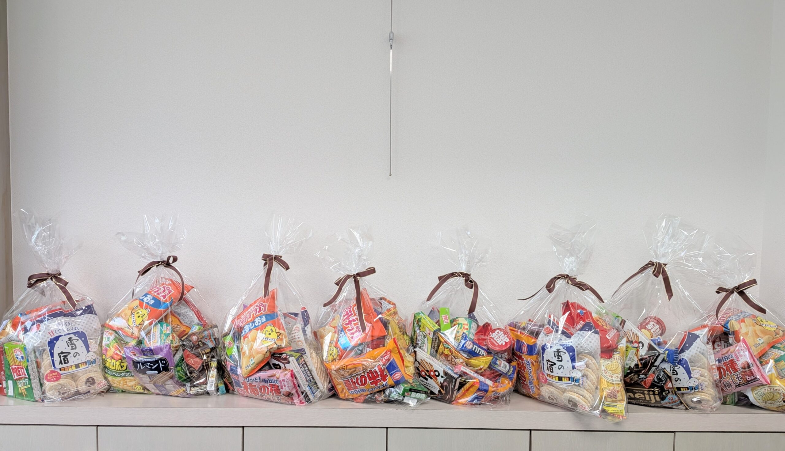 そして先日、その景品となるお菓子の詰め合わせ作業を行いました。